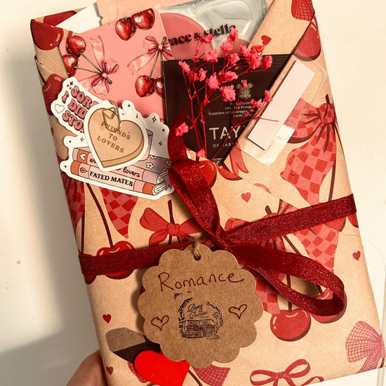 Paired with a Romance Blind Date with a Book, carefully wrapped and chosen to surprise and delight. The title remains a mystery, but the mood is guaranteed: heartfelt, escapist, and swoon-worthy.