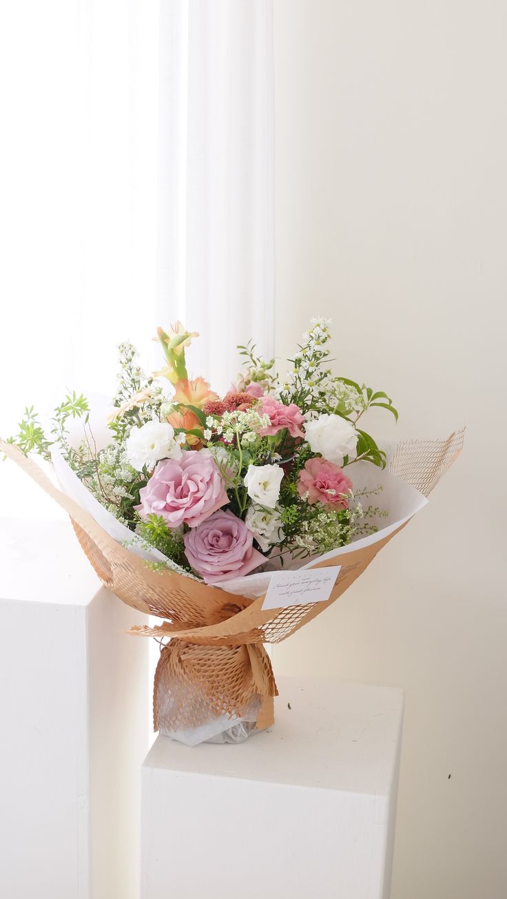 Our Classic Wrapped Bouquet features a generous mix of fresh, hand-selected seasonal blooms — wrapped simply and beautifully in kraft paper.Your bouquet will arrive once per month. Auto-renews.