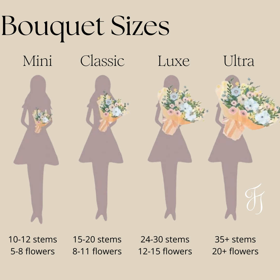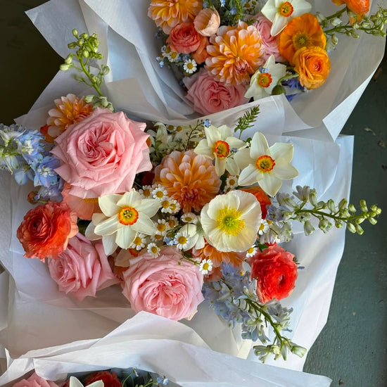 Our Luxe Wrapped Bouquet makes a bold, beautiful impression with over 30 stems of our most premium seasonal flowers. Designed in our signature garden-style and wrapped in classic kraft paper, this bouquet is stunning in hand or in a vase.