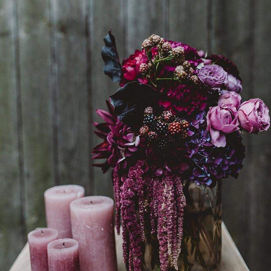 You’ll create a bold, Barbie-meets-Goth inspired bouquet using our Signature Bloom Bar of deep magentas, inky purples, and black-tinted blooms, accented with pinks, feathers, and lace. Dress the part if you’d like — Gothic Barbie, vampy chic, or your own pink-and-black alter ego.