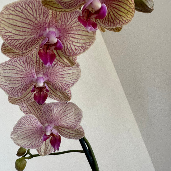 Bring luminous color and effortless elegance into any space with our Kaleidoscope Orchid, a living centerpiece known for its striking golden petals brushed with rose and magenta tones.