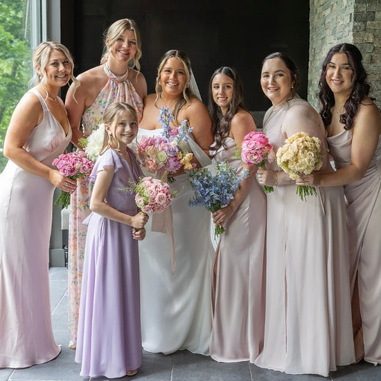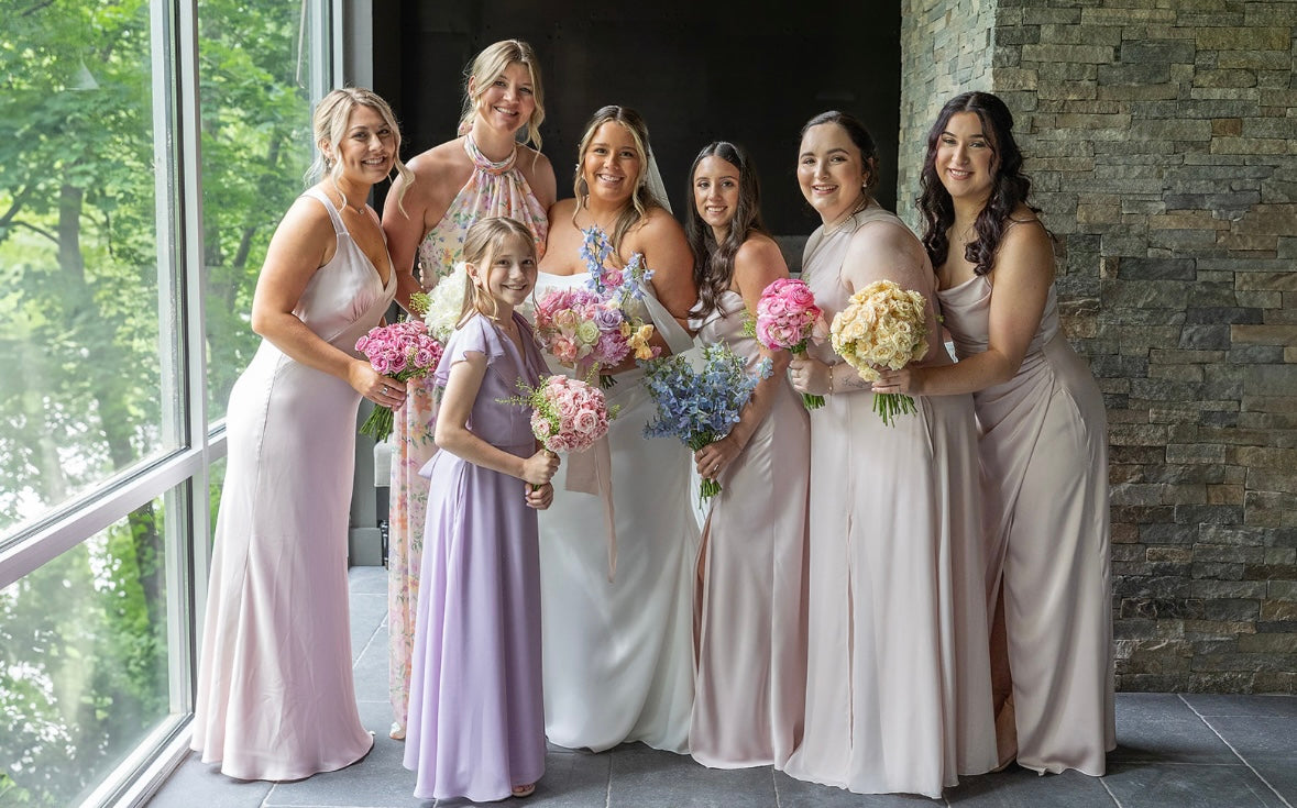 We offer guided DIY Bridal Sessions on our Tea Porch, where you and your party can design bouquets, boutonnieres, and centerpieces with our curated blooms and supplies.